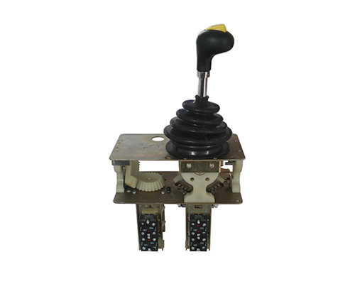 機械傳動部份裝在箱體上部的罩內(nèi),該傳動機構(gòu)分為單手柄聯(lián)動操縱機構(gòu)、抓斗雙手柄操縱機構(gòu)、主付鉤雙手柄操縱機構(gòu)、單手柄操縱機構(gòu)以及單手柄水平操縱機構(gòu)。手柄運動都是用直齒齒輪傳動凸輪軸的。控制器的凸輪軸均為立式布置,傳動部份各支點全部用滾動軸承,以降低功率損耗。